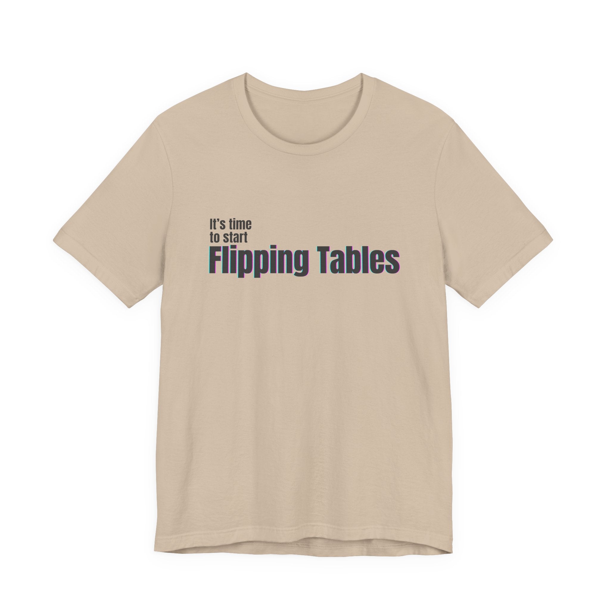 • High-Impact Typography: Features bold, oversized text focusing on the "flipping tables" message for maximum visibility.