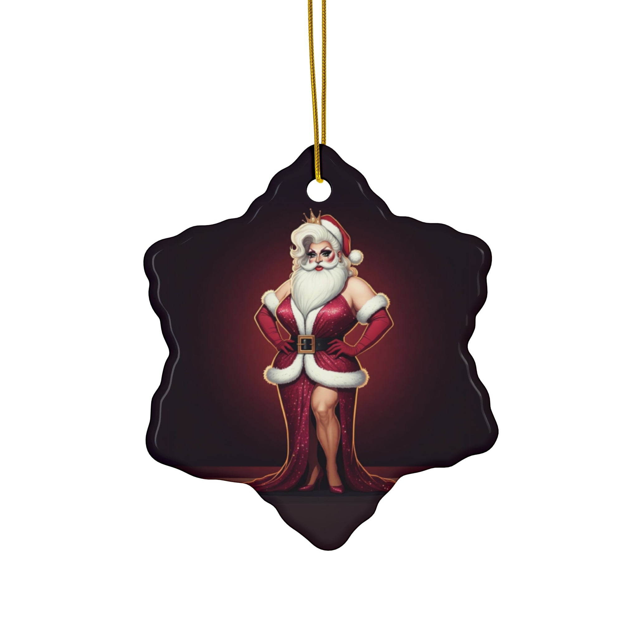 Add some sleigh to your holiday decor! The "Mary Christmas" Ornament is here, serving up holiday glam with a wink and a smile. Santa's sassy alter ego shines in all her glory: glittering gown, fabulous wig, and enough holiday cheer to make the reindeer prance. This stunning ornament is perfect for adding a touch of camp to your tree or makes a perfectly fabulous gift for friends and family.