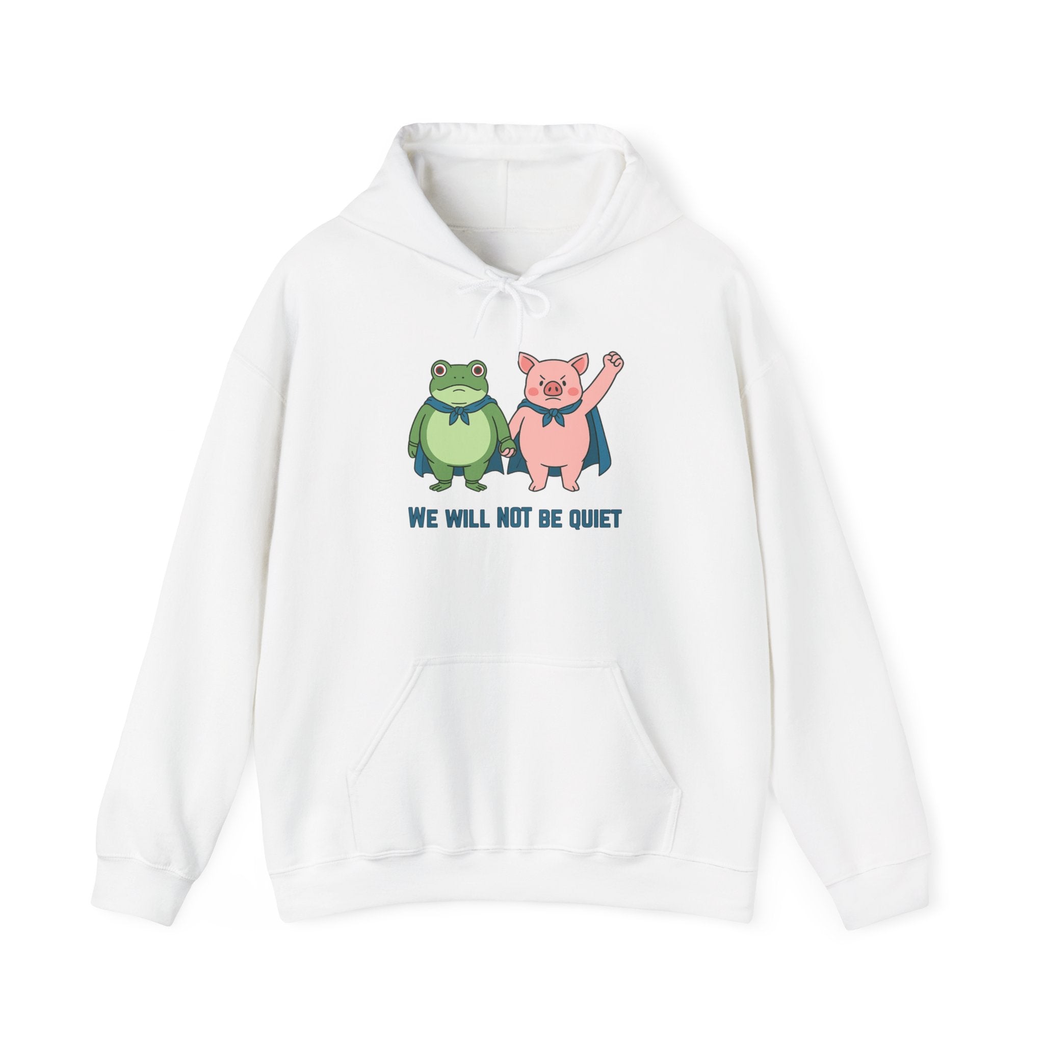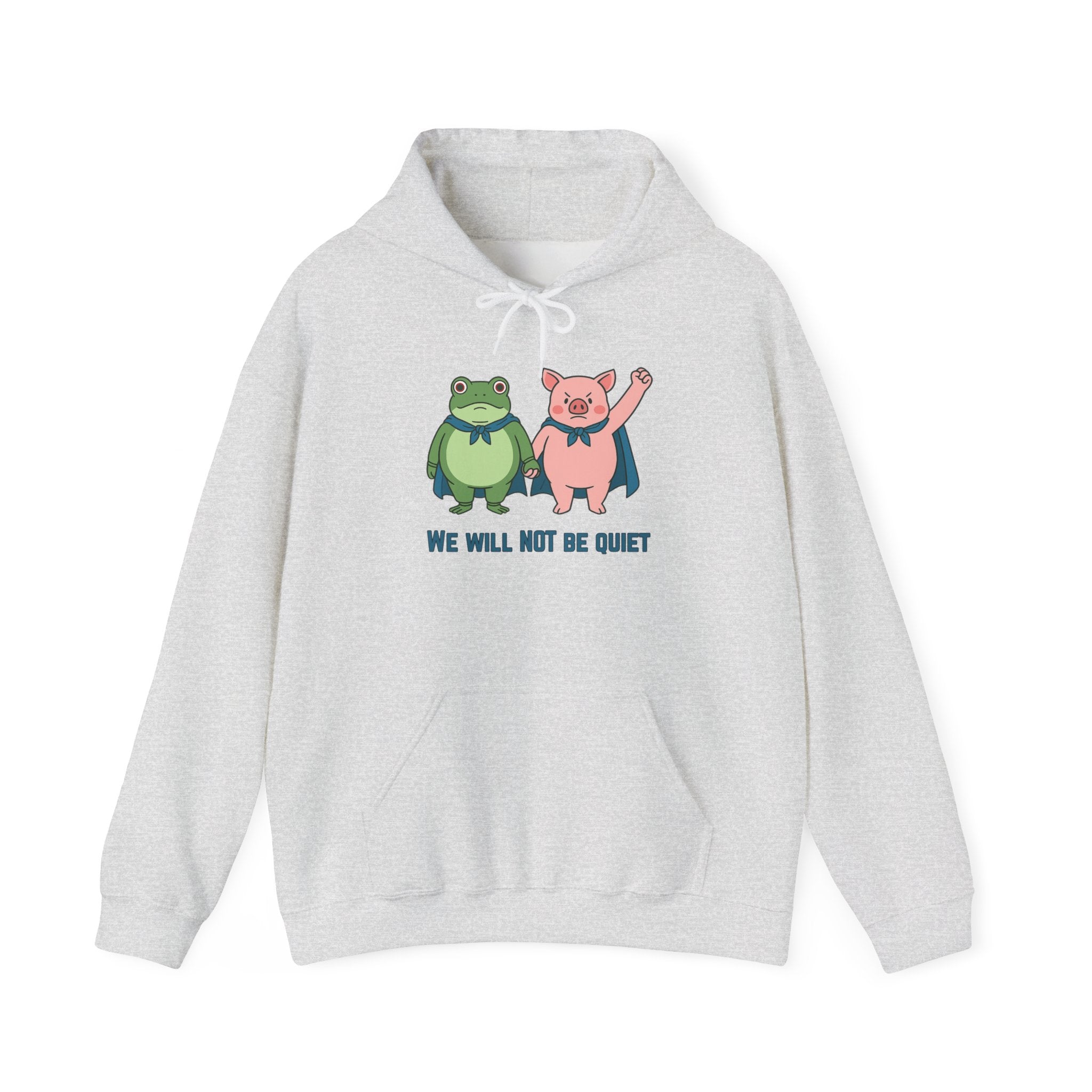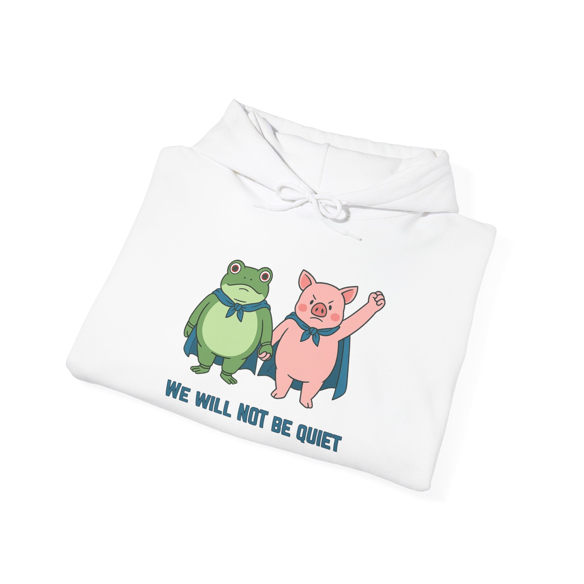 We Will NOT Be Quiet Protest Hoodie – Defiant Frog & Pig Design | Activist Streetwear Cotton Blend